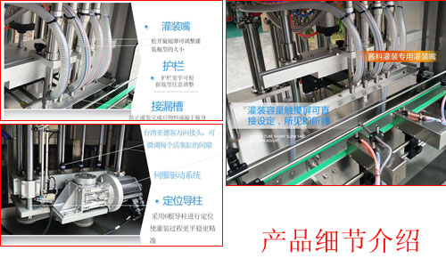 操作流程:自動上料、灌裝、加輔料、旋蓋、噴碼、貼標(biāo)、封口、封箱。
