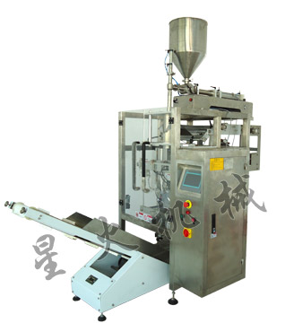 該機(jī)全自動完成送料、計量、充填制袋、打印日期、產(chǎn)品輸出全部生產(chǎn)過程。
